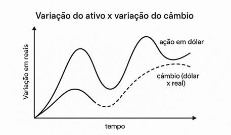 Antes de detalhar cada tipo de risco, vale ter uma visão de conjunto. O quadro abaixo resume, de forma aproximada, os principais riscos que costumam aparecer quando se investe fora do país: